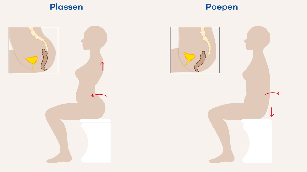 Tijdens het plassen moet u ontspannen rechtop zitten met een holle rug.