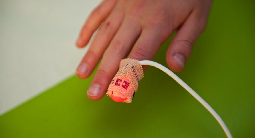 Als uw kind ontspannen genoeg is, komt degene die de behandeling doet zachtjes binnen. Uw kind houdt het masker op.