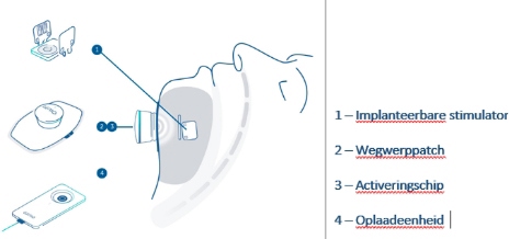 Bij het Genio systeem komt de stimulator onder de kin. U krijgt geen apparaat in de borst.