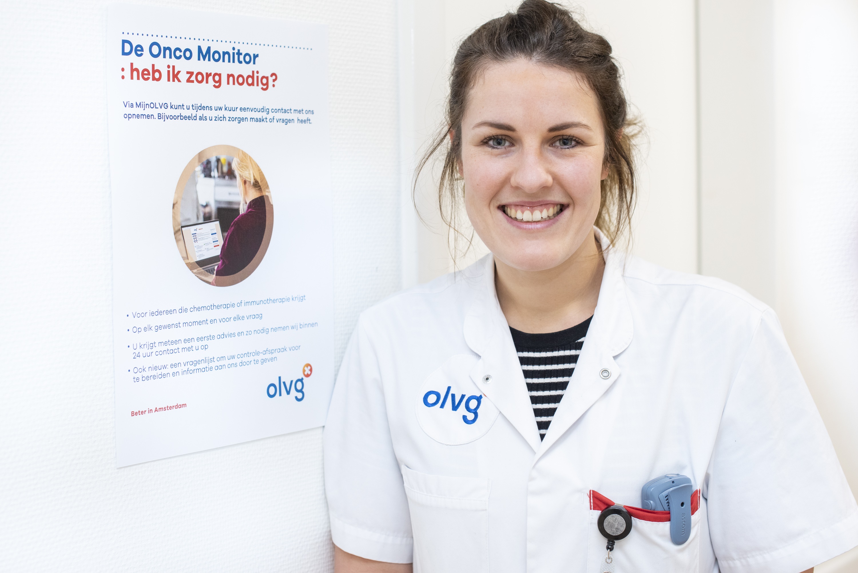 'Patiënten die bijvoorbeeld last van bijwerkingen hebben van hun behandeling, kunnen via een speciaal ontwikkeld menu in het patiëntenportaal MijnOLVG, 24 uur per dag controleren of ze zorg nodig hebben’, vertelt hematoloog Wim Terpstra. ‘Afhankelijk van de antwoorden op de vervolgvragen krijgt de patiënt direct een passend advies van MijnOLVG, neemt een oncologieverpleegkundige telefonisch contact op of wordt een (extra) afspraak gemaakt in het ziekenhuis.’