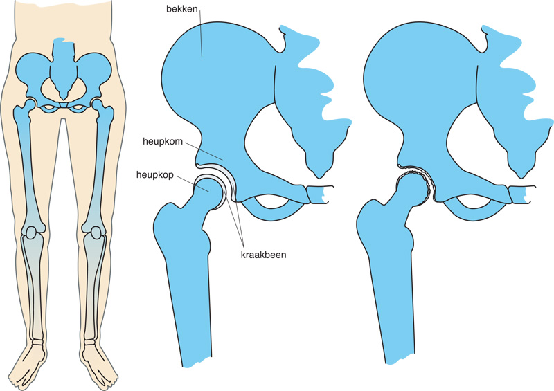 Je heup bestaat uit een kop en een kom. De kop zit aan je bovenbeen vast, de kom zit in het bot van je bekken.