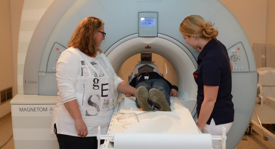 Met een MRI-scanner kunnen we in het lichaam kijken. Een MRI-onderzoek gebeurt met een krachtige magneet, radiogolven en een computer. Er worden geen röntgenstralen gebruikt.