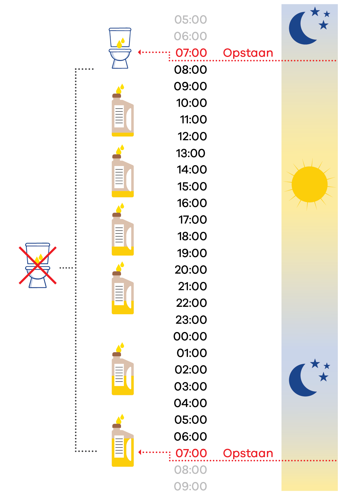 Als u denkt dat u meer dan 2 liter per dag plast, heeft u een extra fles nodig. U kunt deze extra fles direct vragen bij de afdeling Bloedafname.